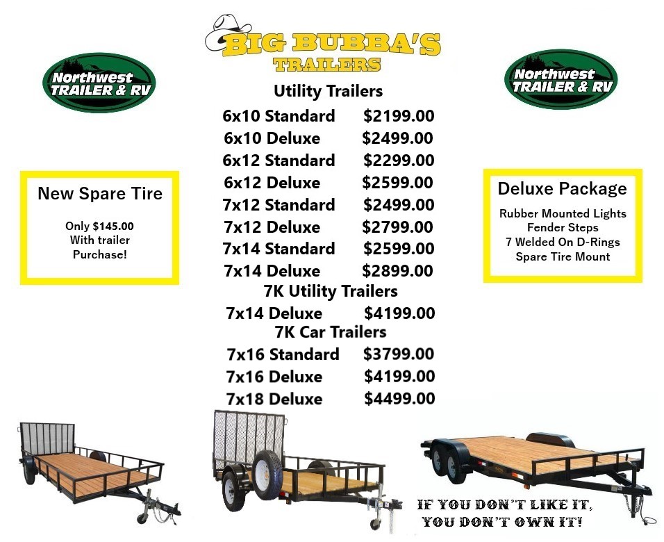 Northwest Trailer & RV is a proud dealer of Big Bubba’s Trailer.